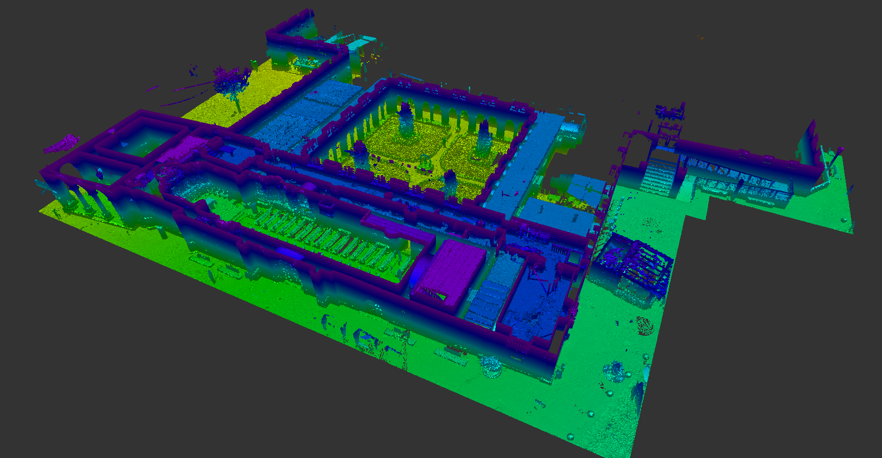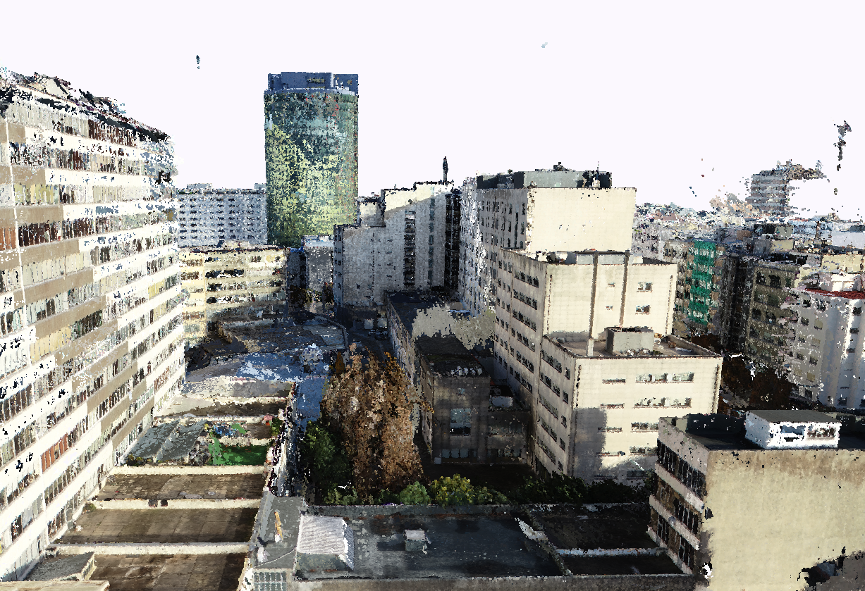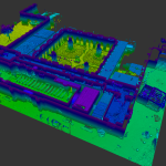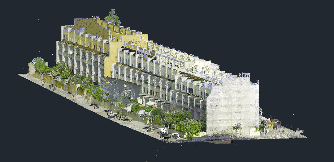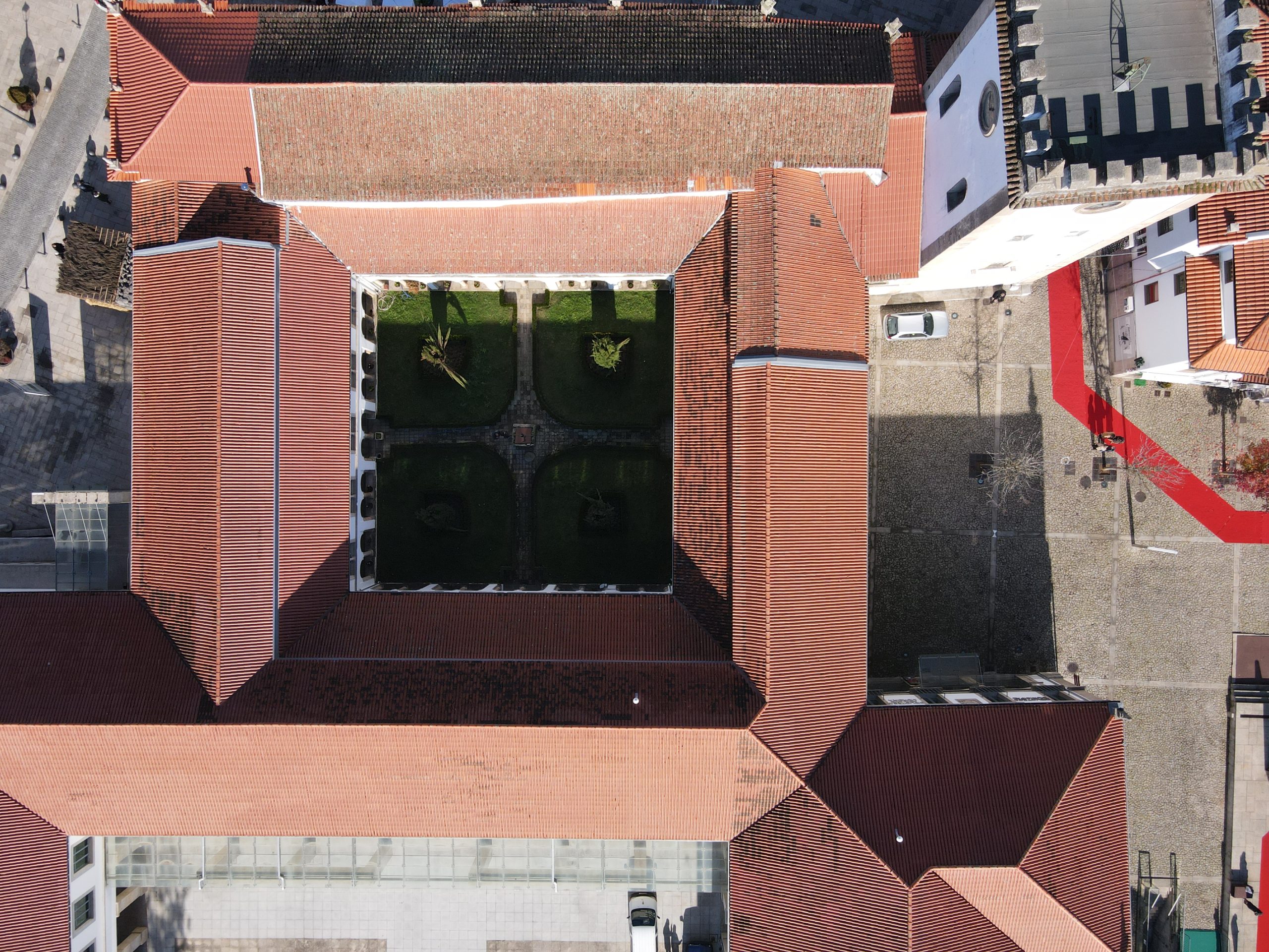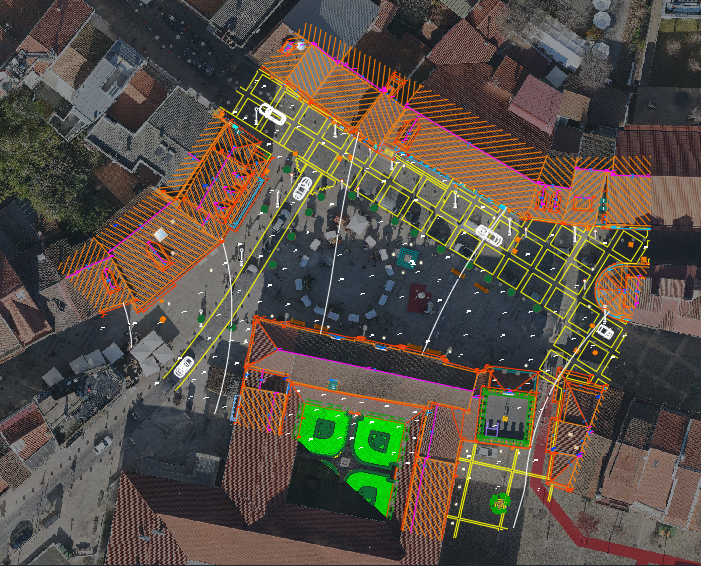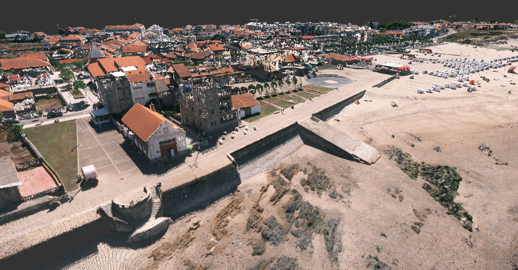 Levantamento arquitetónico, combinando técnicas de aerofotogrametria, laser scanning e topografia clássica, com o objetivo de produzir desenhos técnicos, incluindo planta de cobertura e alçados à escala 1:100.