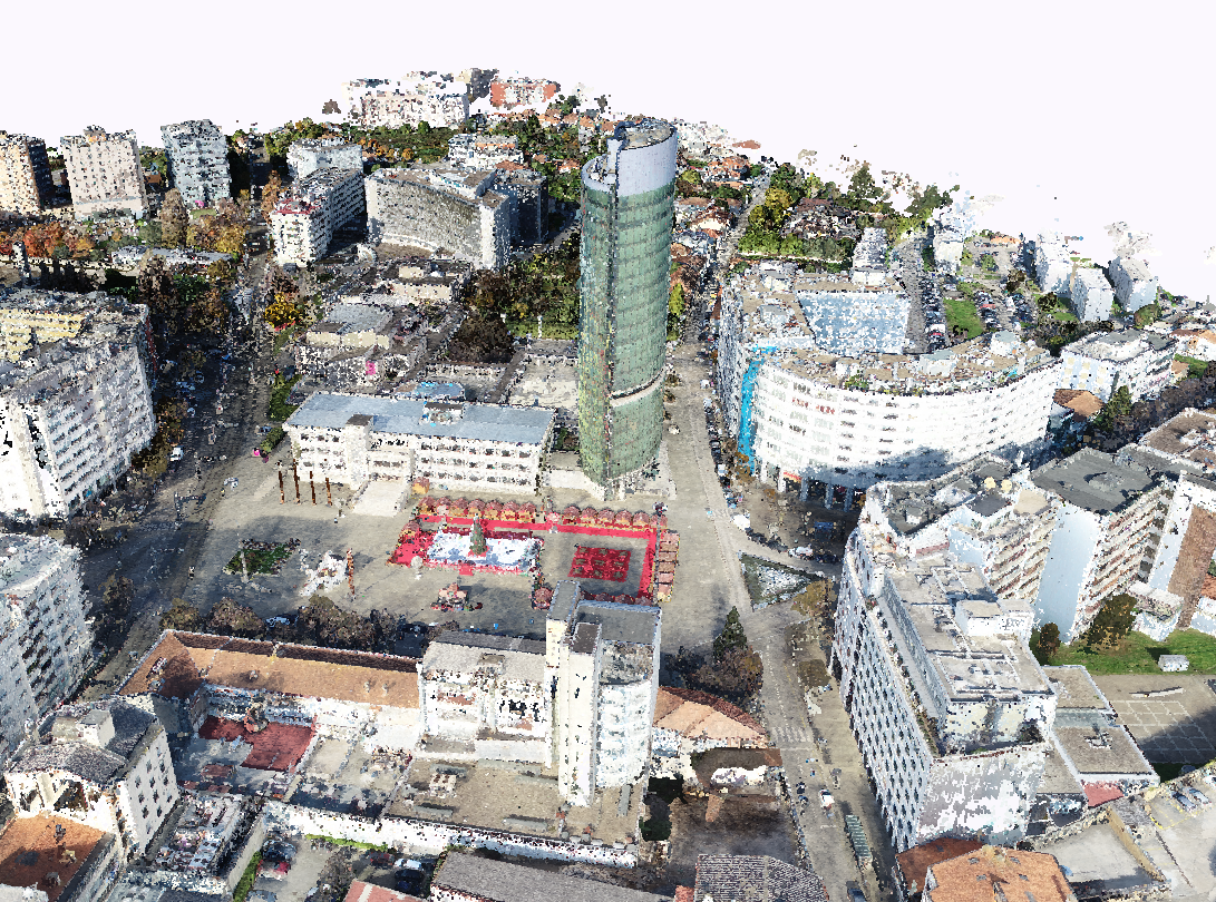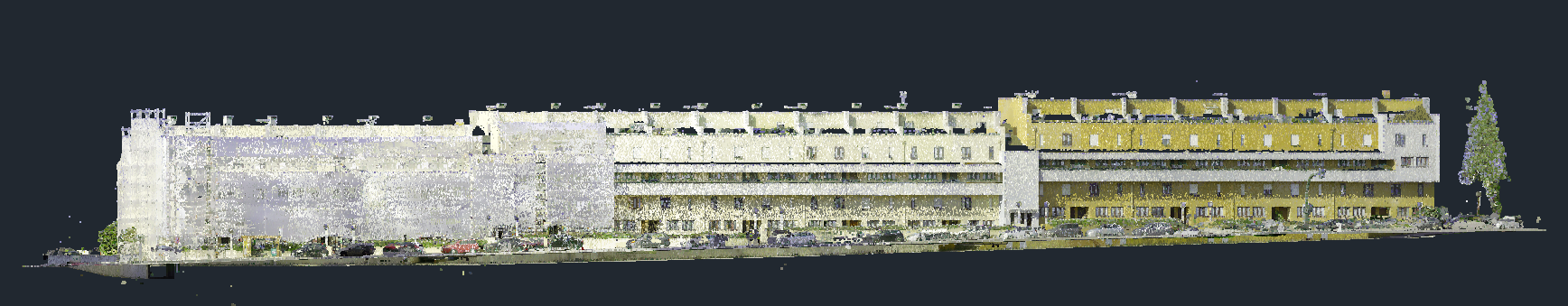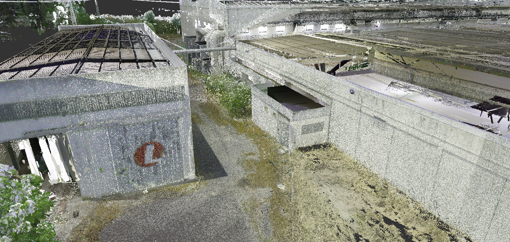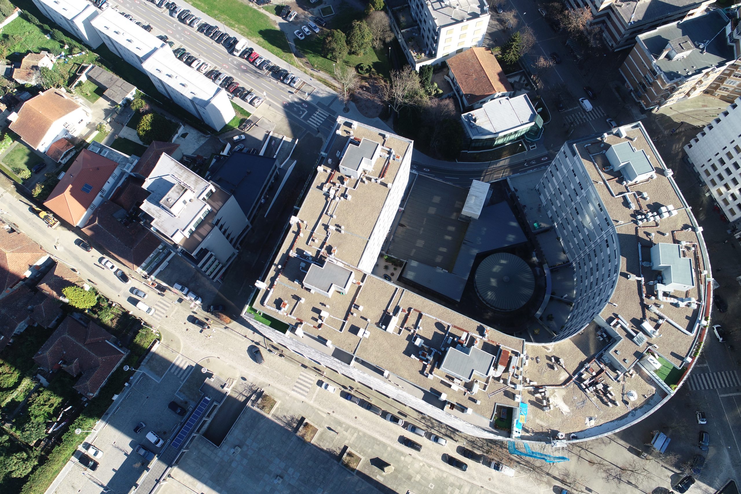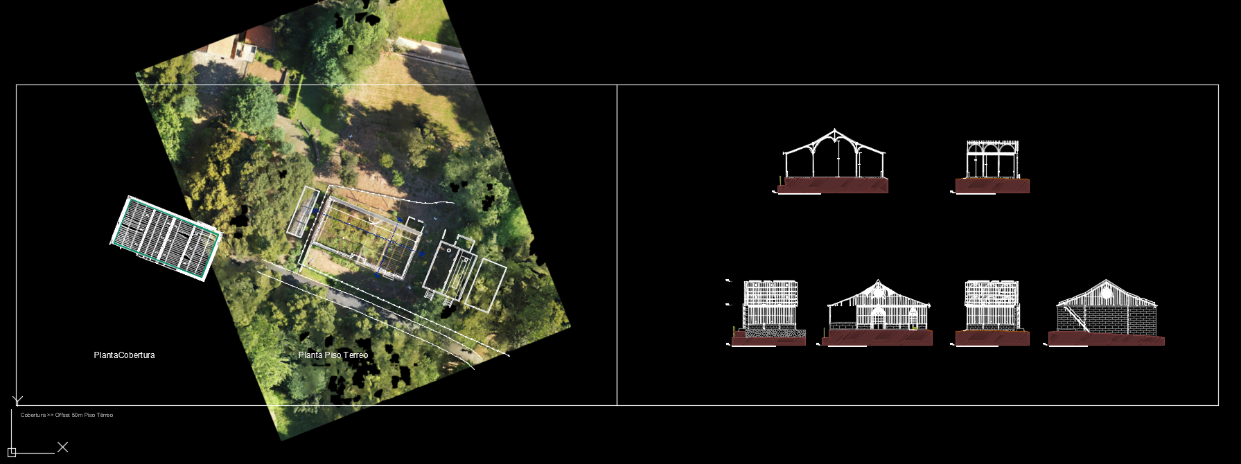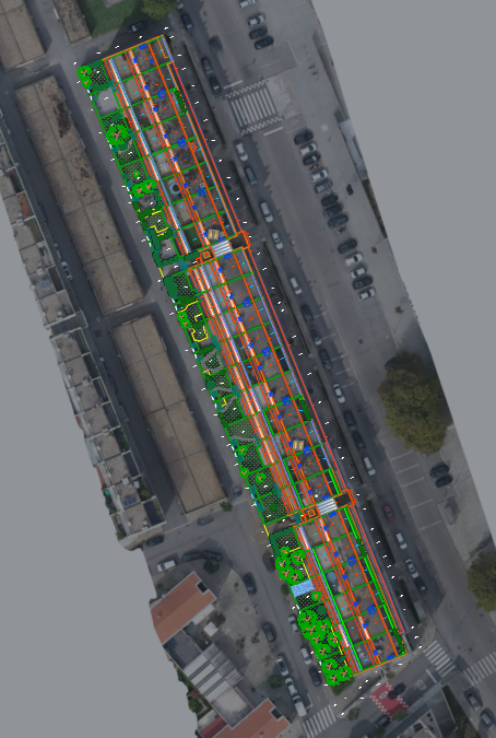 Levantamento arquitetónico, combinando técnicas de aerofotogrametria, laser scanning e topografia clássica, com o objetivo de produzir desenhos técnicos, incluindo planta de cobertura e alçados à escala 1:100.
