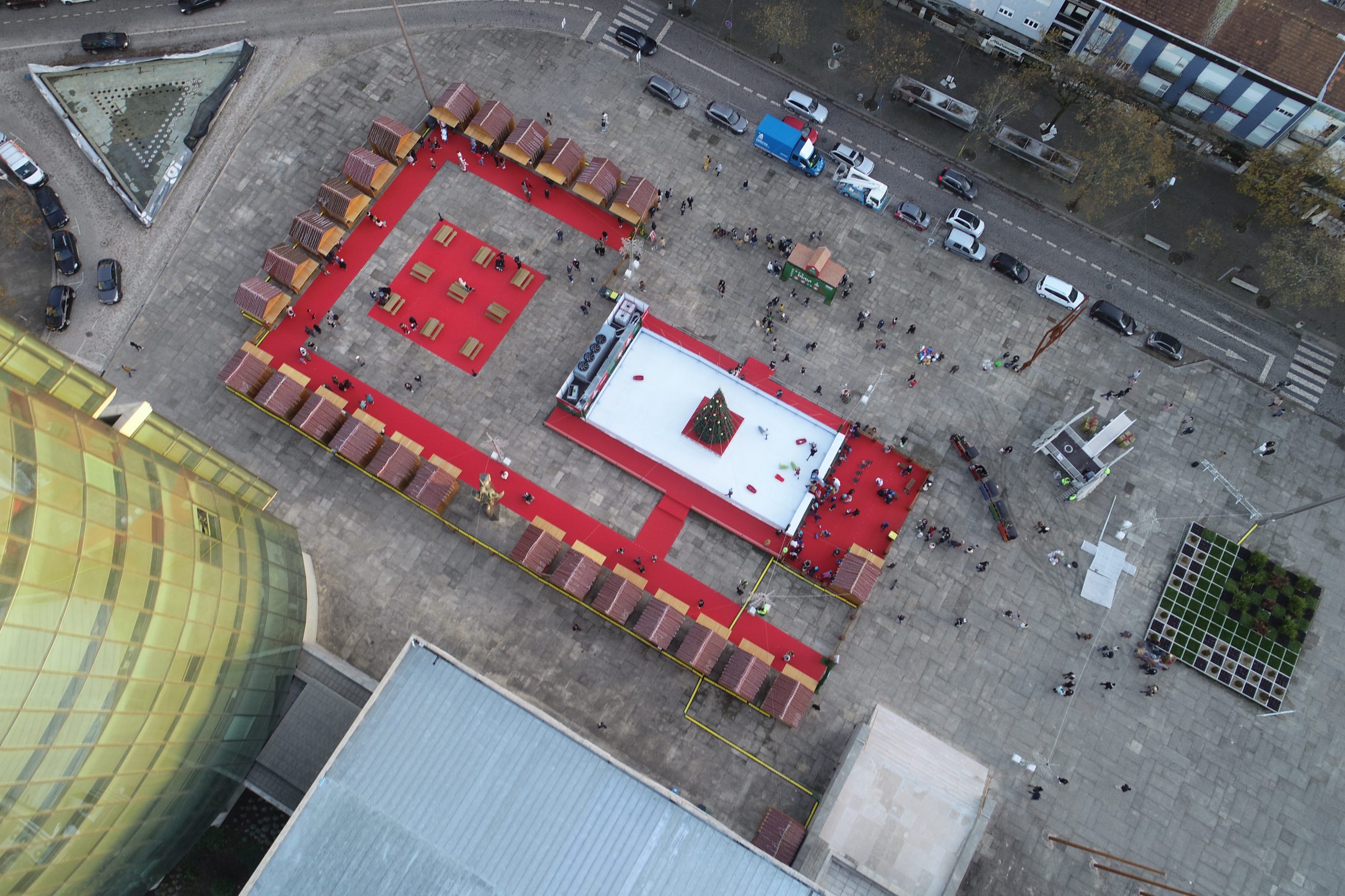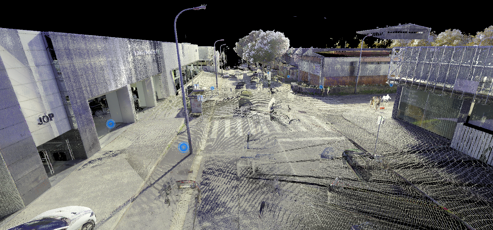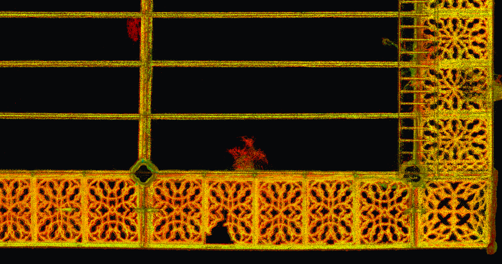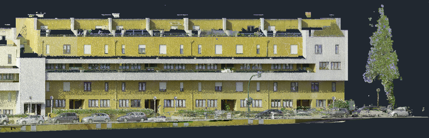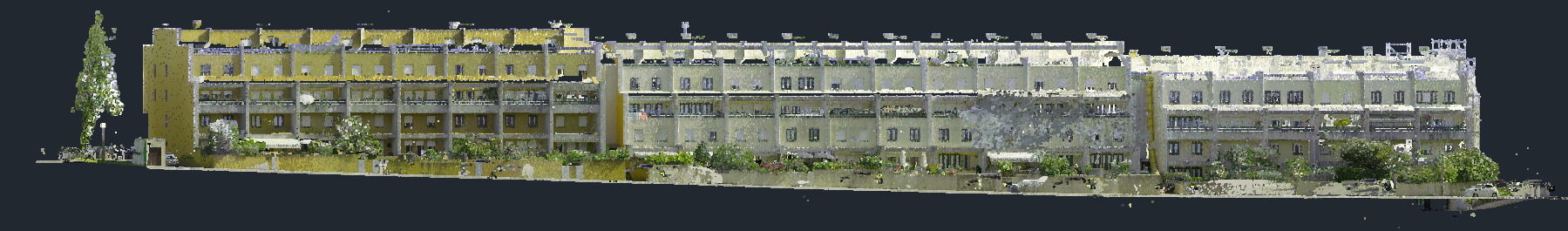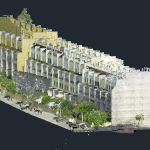 Levantamento arquitetónico, combinando técnicas de aerofotogrametria, laser scanning e topografia clássica, com o objetivo de produzir desenhos técnicos, incluindo planta de cobertura e alçados à escala 1:100.