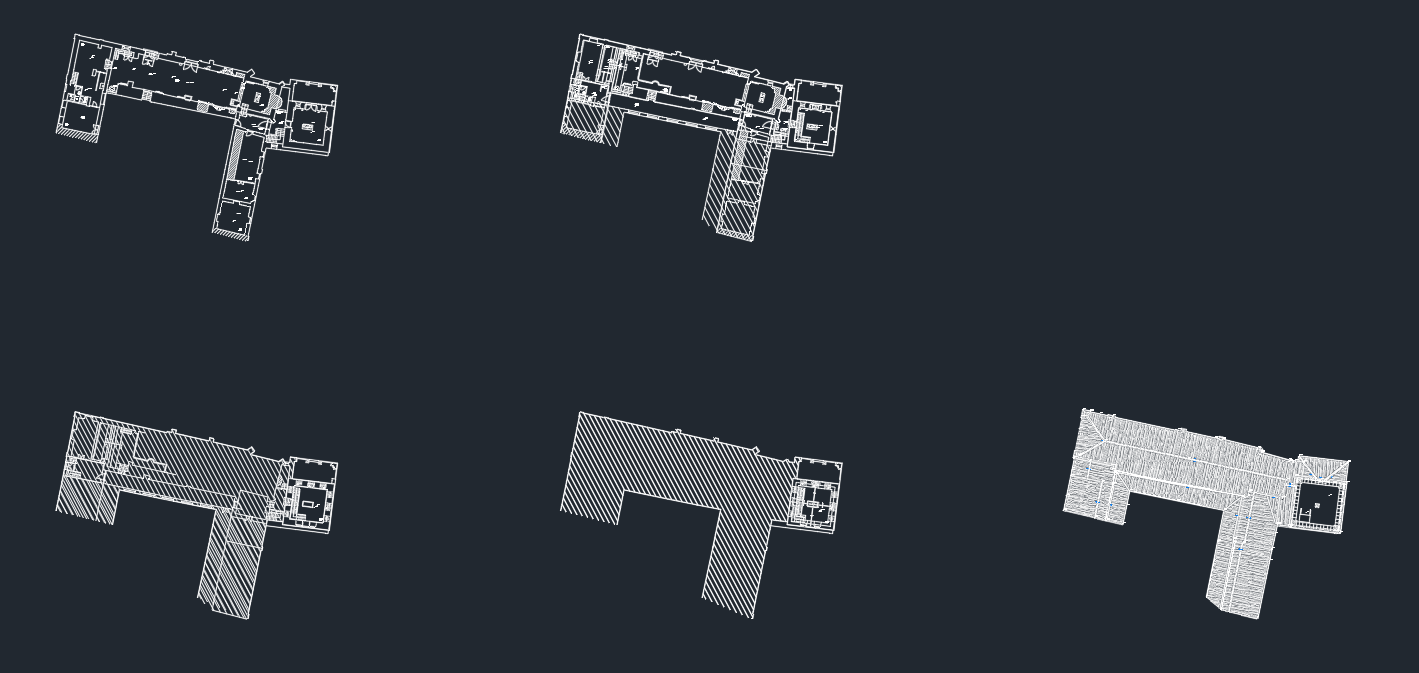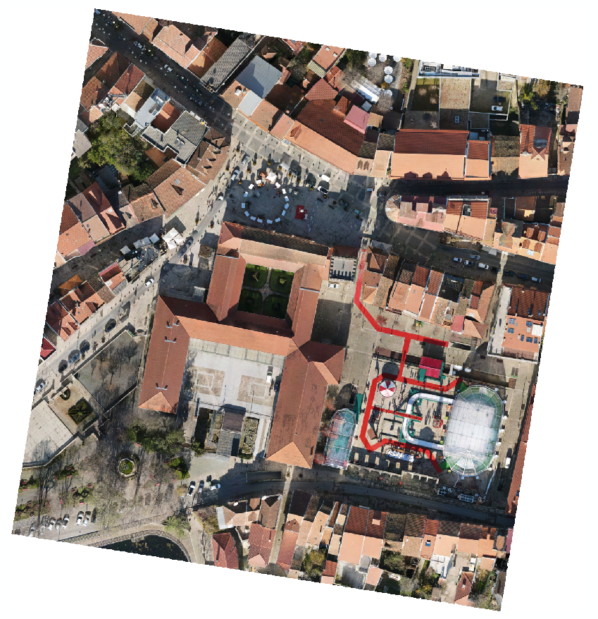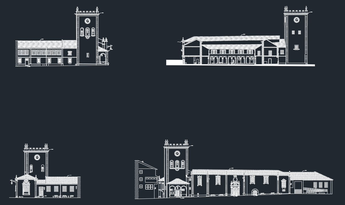 Levantamento topográfico e arquitetónico, combinando técnicas de aerofotogrametria, laser scanning e topografia clássica, com o objetivo de produzir desenhos técnicos, incluindo plantas de interior, planta de cobertura, alçados e cortes, todos à escala 1:100, além de um levantamento topográfico à escala 1:500.